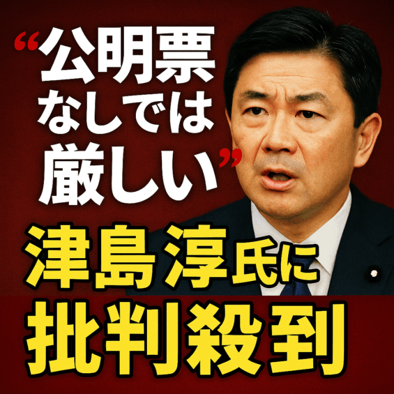 津島淳氏は「地元の人間関係は断ち切れない」と発言し、公明票の重要性をにじませた。
