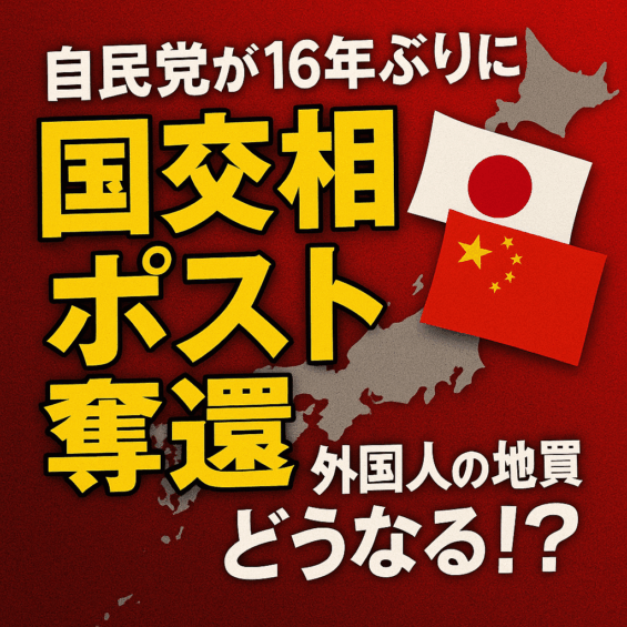 自民党が16年ぶりに国交相ポストを奪還した背景には、連立政権のパワーバランスだけでなく、外国資本による土地買収問題への強い危機感があります。