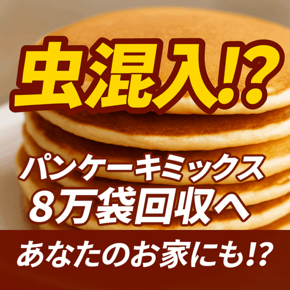 よつ葉乳業が販売した「よつ葉のバターミルクパンケーキミックス」で虫混入の可能性が判明し、約8万2千袋を自主回収。
