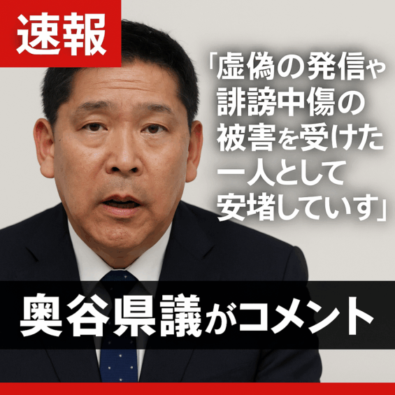 奥谷謙一県議のコメント「誹謗中傷の被害者として安堵しています」は、単なる感想ではなく、被害を経験した政治家としての“社会への警鐘”でもあります。