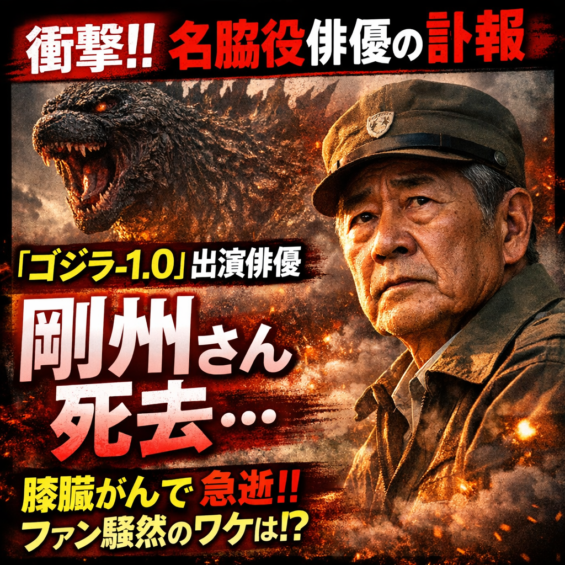 ゴジラ 映画 キャスト,ゴジラ-1.0,ゴジラ-1.0 出演俳優,トレンドニュース,俳優 訃報,剛州,剛州 死去,剛州 膵臓がん,名脇役 俳優,映画 俳優 死去,浅井企画,炎上系ブログ,特撮 映画 俳優,膵臓がん 芸能人,芸能ニュース まとめ,芸能人 死亡ニュース,芸能界 訃報,話題のニュース
