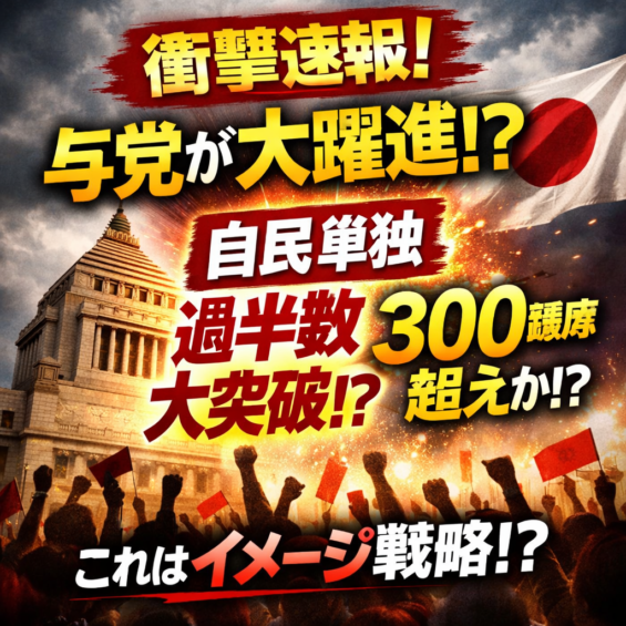 SNS話題,イメージ戦略,トレンドニュース,ネットの反応,与党300議席,世論誘導疑惑,世論調査,中道野党,参政党,国政選挙,政治ニュース,日本政治,自民党,自民党単独過半数,衆院選,衆院選中盤情勢,衆院選情勢,選挙予測,選挙情勢調査,野党苦戦