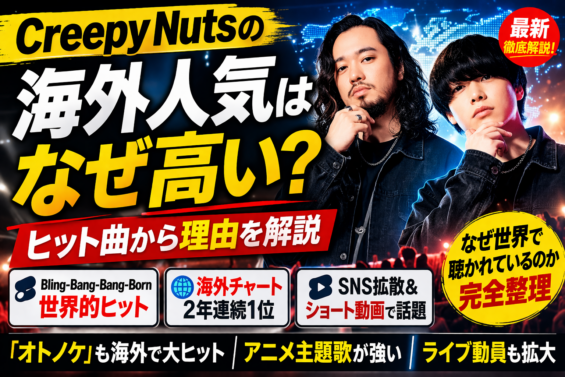 この記事では、Creepy Nutsの海外人気が高い理由を、ヒット曲、配信実績、アニメとの関係、ライブ展開という視点からわかりやすく整理していきます。